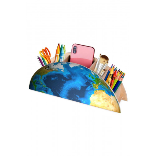 Ahşap Dünya Masaüstü Kalemlik Kalem Kutusu Organizer