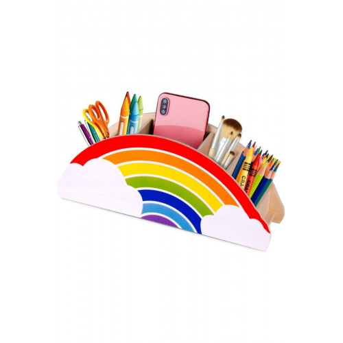 Ahşap Gökkuşağı Çocuklar İçin Masaüstü Kalemlik Kalem Kutusu Organizer